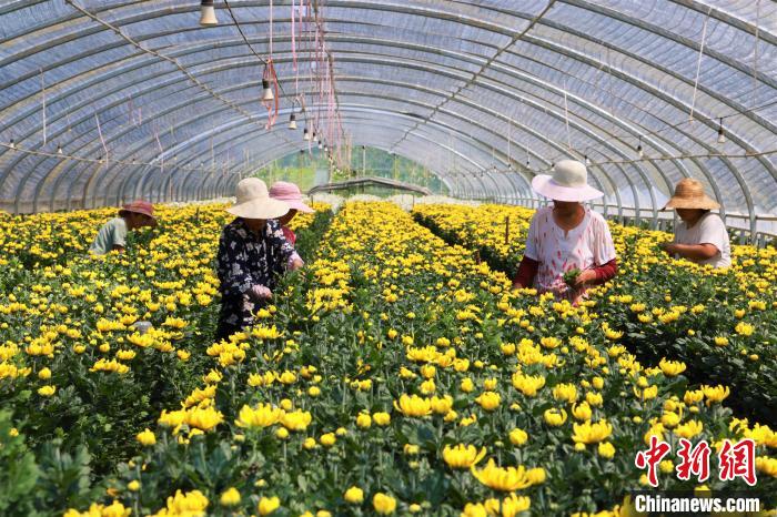 立秋将至,山东省枣庄市峄城区菊农在当地菊花种植基地管护菊花,确保菊花丰产丰收。近年来,枣庄市峄城区积极调整农业产业结构,引导农民发展特色产业种植,带动农民增收致富。“鲜花经济”已逐渐成为当地推动特色农业发展、带动农民增收致富的新产业。