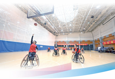 女子轮椅篮球队在中国残疾人体育运动管理中心训练备赛。新华社记者 才 扬摄