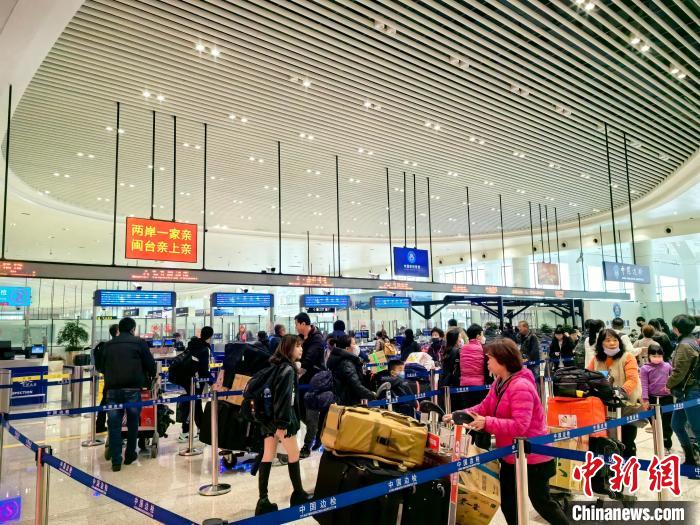 2月2日,经厦金航线往来两岸的台胞旅客在厦门五通口岸办理通关手续。 刘楷 摄