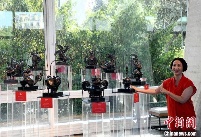 当地时间6月19日,联合国教科文组织艺术藏品精华展在巴黎亮相。中国艺术家蒋琼耳的艺术项目《时间的容器》中的“十二神兽”装置参加展览并被教科文组织收藏。 中新社记者 李洋 摄